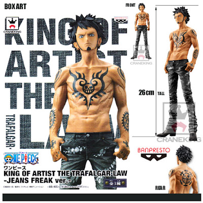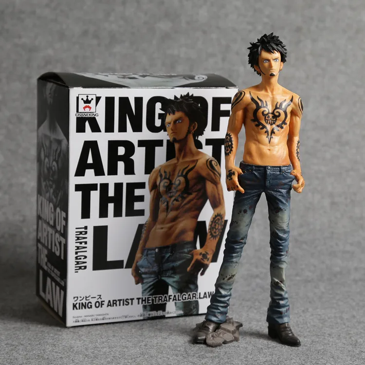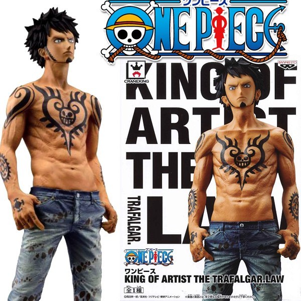 100% Money Back Guarantee!. Banpresto Línea de producto:. As seen on the pages of Shonen Jump, the One Piece Trafalgar Law King of Artist Statue shows off Trafalger's tattooed and muscled chest.
