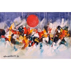 Mashkoor Raza 24 X 36 Inch Oil On Canvas Abstract Painting Ac Mr 442