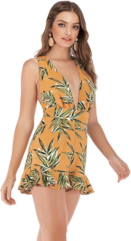 Amazon Com Nanaco Women S Summer V Neck Sleeveless One Piece Short Floral Rompers And Jumpsuits Clothing