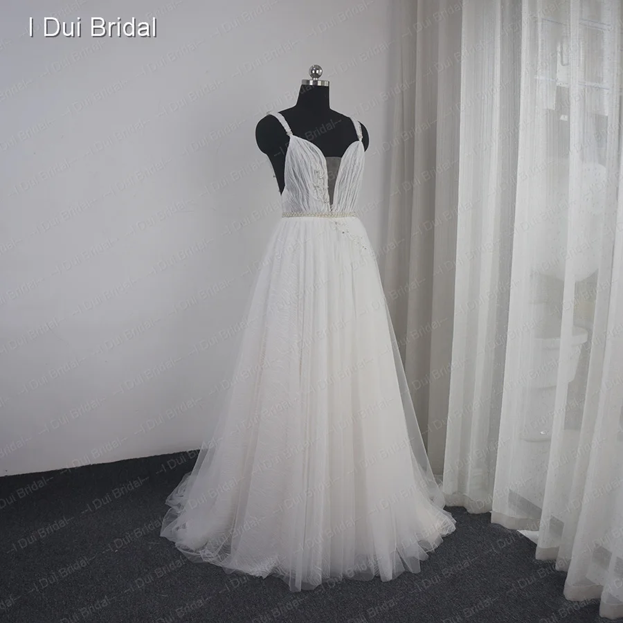 Pleated Corset Lace Wedding Dress A Line Low Back Beaded Plunging Neck Factory Real Photo Custom Made Wedding Dresses Aliexpress